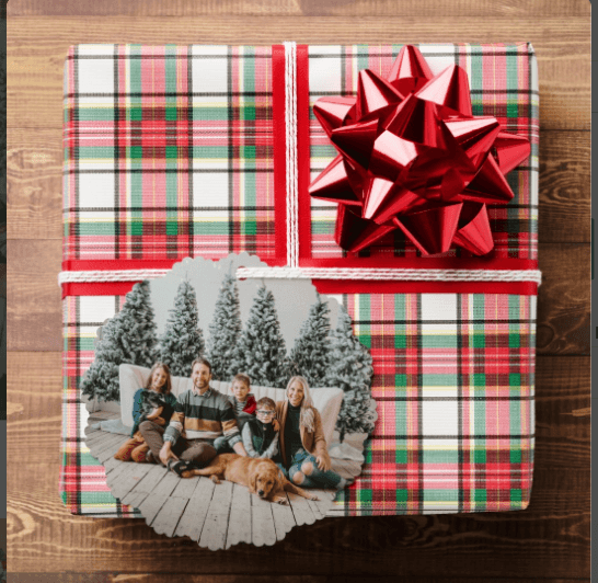 Make your presents extra special this Christmas with a gift tag that becomes a keepsake! Personalize it with a photo of your favorite family memory and edit the text on the back to include your family name. This adds a heartfelt touch to your gift wrapping and can also be cherished year after year.